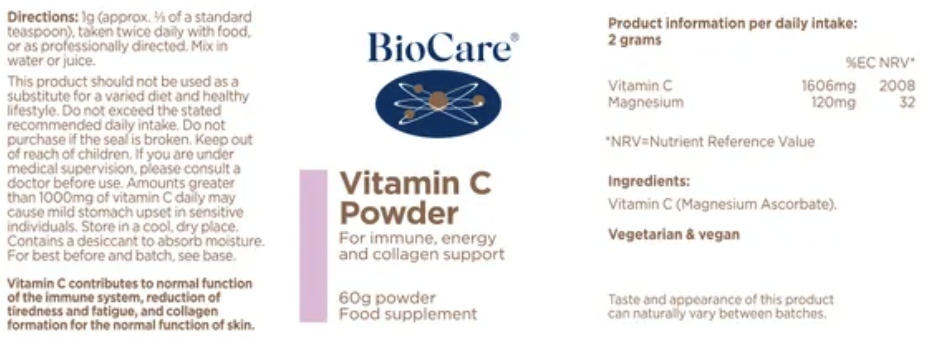 - 1g (approx. 1/3 of a standard teaspoon), taken twice daily with food, or as professionally directed. Mix in water or juice.