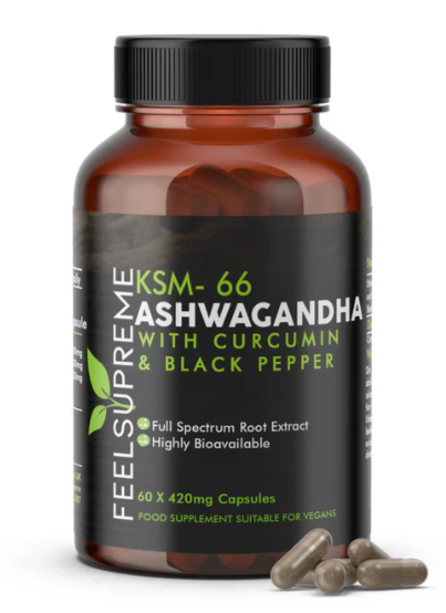 Ashwagandha is best known for its stress-reducing properties. It helps control mediators of stress, including cortisol, and reduces the activity of the hypothalamic-pituitary-adrenal (HPA) axis, which regulates the stress response. Studies have shown that Ashwagandha supplements may help relieve stress and anxiety. Curcumin complements this by potentially having a calming effect on anxiety symptoms.