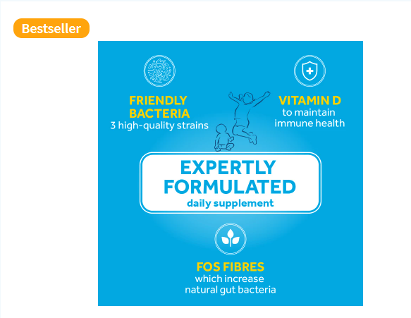 • Contains three live cultures strains which have been extensively researched in babies and children.