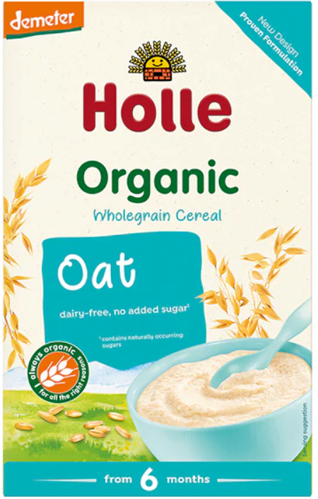 Oats is known for its high protein content and as a great source of energy. It contains easily digestible carbohydrates, many unsaturated fatty acids, and a high percentage of vitamin B1. Holle Organic Oats Baby Porridge makes a perfect breakfast for your baby at a later stage of weaning – after introducing your baby to the gluten free porridges Rice and Millet at the beginning of weaning. (Single grain porridges should ideally be given before moving on to multi grain baby cereals like the Holle Organic Baby Muesli Porridge.) Oats contains gluten but not in a high quantity.
