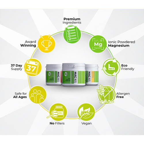 MAG365 is our flagship, multi-awarding-winning ionic magnesium citrate powder made by combining magnesium carbonate with citric acid to create a unique and highly bioavailable formula. MAG365 is derived from non-GMO sugar beets and sea water.