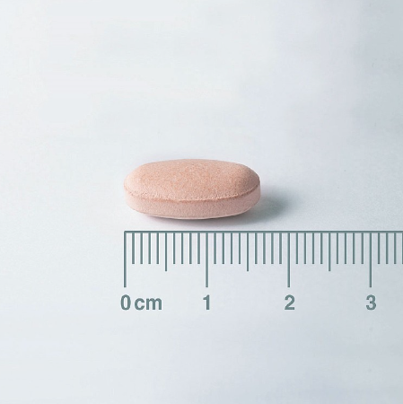 A pink oval coated tablet.