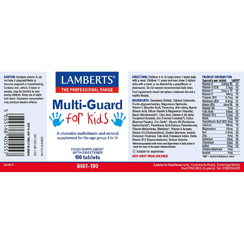 • Multi-Guard® for Kids can be used alongside other food supplements such as our Chewable Calcium and Vitamin C powder