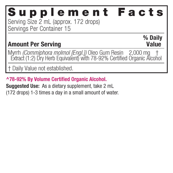 Natures Answer Myrrh Oleo Gum Resin Organic Alcohol Concentrated Herbal Extract has been enjoyed by thousands of satisfied customers since 1972! Family owned and operated. Featuring our exclusive bio-chelated®, holistically balanced® herbal extracts that families have relied on for generations!
