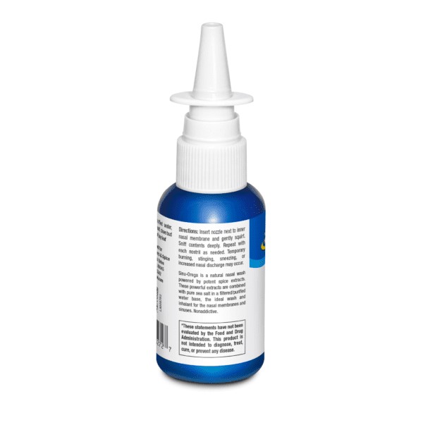 SinuOrega is a natural nasal wash powered by potent spice extracts. These powerful extracts are combined with pure sea salt in a spring water base, the ideal wash and inhalant for the nasal membranes and sinuses. Can be used daily as it is non-addictive.