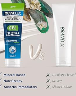 RELAXING – Our massage gel contains a deeply relaxing blend of menthol, a source of glucosamine plus green lipped mussel and essential oils to help soothe and unwind.